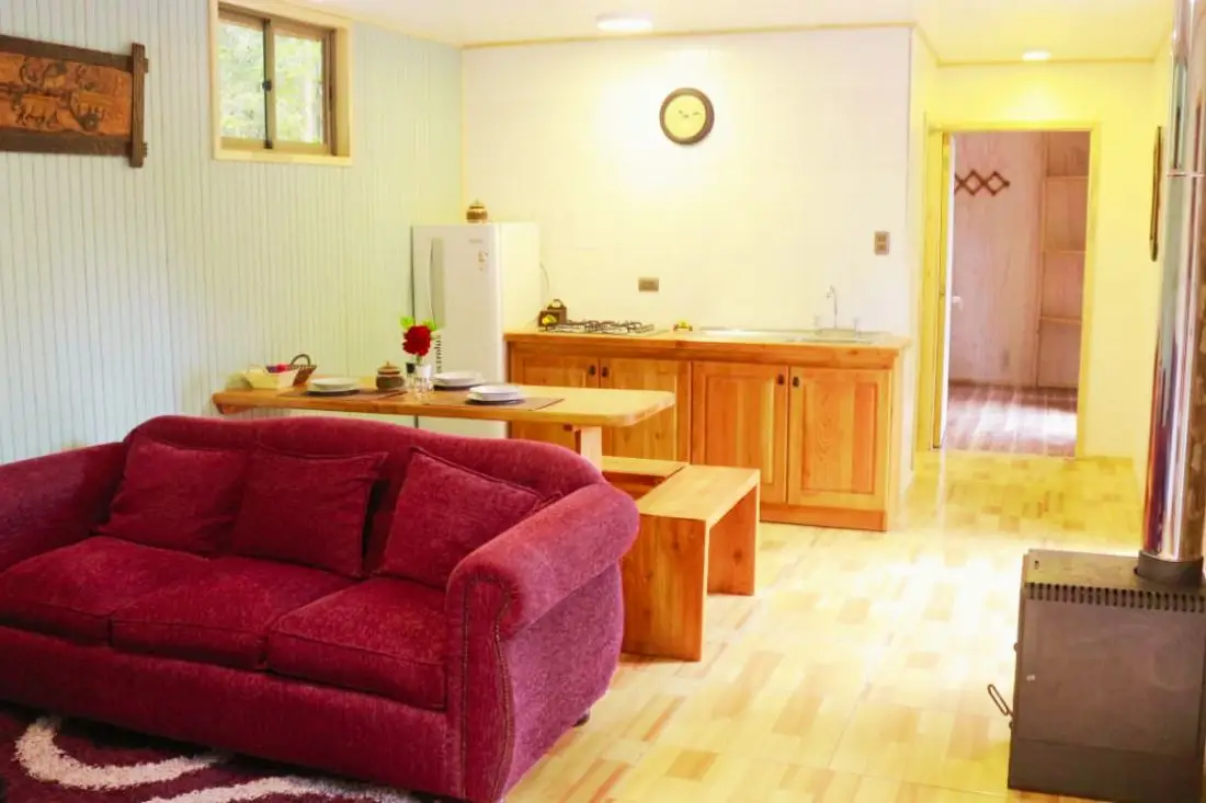 Cabaña ideal para familias, con acceso a piscina temperada exclusiva para huéspedes y ubicada a minutos de Villarrica, Lican Ray y los principales atractivos de la región.